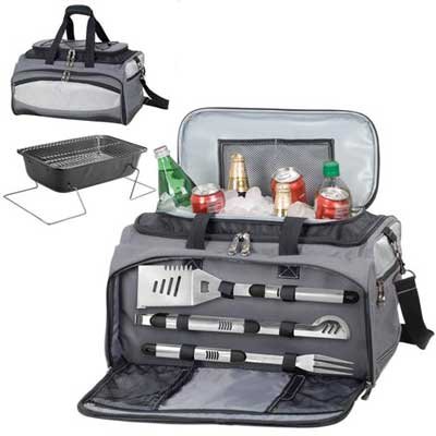 The Buccaneer is the ultimate tailgating cooler, incorporating a BBQ grill and 3 piece BBQ tool set into it. The tote features a large, insulated, waterproof cooler compartment, padded handles, shoulder strap, and a reinforced base.