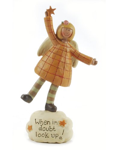 Adorable angel exclaims "When in Doubt Look Up!". This piece designed by Suzi Skoglund, and made of handcrafted resin stands 2-1/2-inch length by 4-3/4-inch height.
